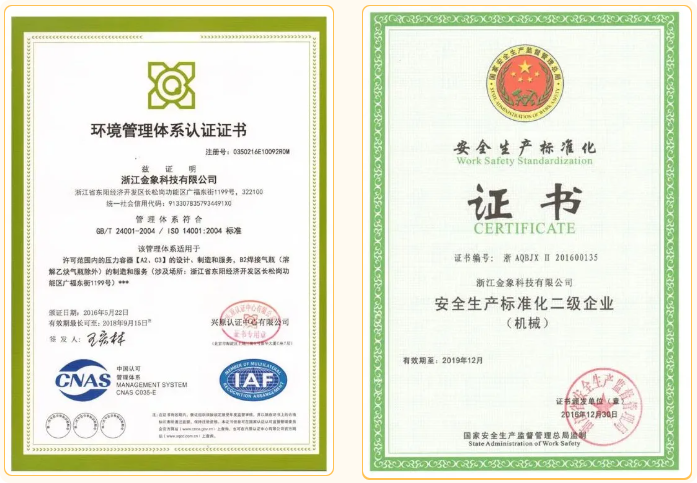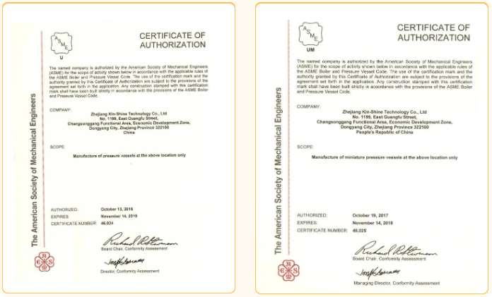 Kin-Shine holds Special Equipment Design Licenses (A2, C2) and Special Equipment Manufacturing Licenses (A2, B2, C2), a Road Motor Vehicle Production License, and has obtained certifications such as US DOT & ASME, EU EC, Korean KGS, and Japanese KHK. Strictly adhering to various design and manufacturing license requirements, the company implements a rigorous and controllable quality assurance system. It provides customers with high-quality products and services including fluorine chemical and pharmaceutical complete equipment, high-purity electronic gas refining/storage/transportation equipment, LPG supply storage tanks, tank trucks with pumps, various gas cylinders, pressure vessels, and gas operation platforms, meeting the equipment needs of various process industries and emerging sectors in the national economy.