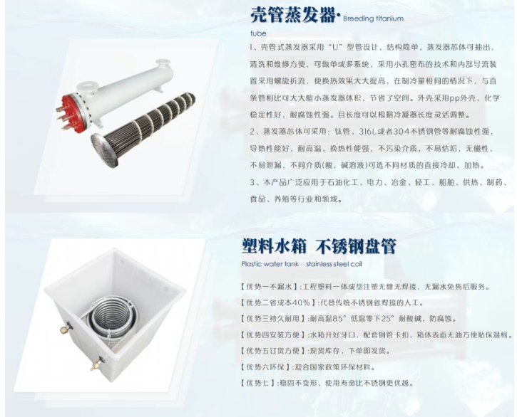 Wuxi Xinwuhuan Energy Technology Co., Ltd. is a comprehensive enterprise specializing in the development, production, and trading of refrigeration equipment and accessories. Its main products include shell-and-tube evaporators, pure titanium evaporators (titanium coils, titanium barrels), stainless steel evaporators, corrosion-resistant evaporators, titanium tube heat exchangers, and custom-shaped titanium tubes. These products are widely used in specialized cooling and heating applications such as electroplating chillers, laser chillers, seafood machines, heat pump units, ice makers, and marine air conditioning systems. By producing high-quality products, offering excellent after-sales service, and building sincere credibility, the company continuously develops and manufactures new energy-efficient products to meet the diverse needs of its customers. Its products are sold across China, with pure titanium evaporators being particularly popular nationwide and exported to Hong Kong, Europe, America, and Southeast Asia.