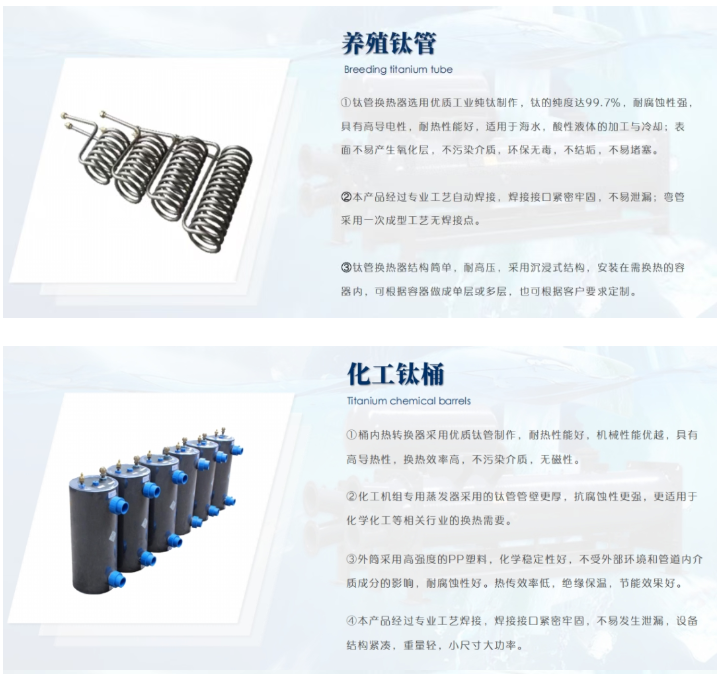 Wuxi Xinwuhuan Energy Technology Co., Ltd. is a comprehensive enterprise specializing in the development, production, and trading of refrigeration equipment and accessories. Its main products include shell-and-tube evaporators, pure titanium evaporators (titanium coils, titanium barrels), stainless steel evaporators, corrosion-resistant evaporators, titanium tube heat exchangers, and custom-shaped titanium tubes. These products are widely used in specialized cooling and heating applications such as electroplating chillers, laser chillers, seafood machines, heat pump units, ice makers, and marine air conditioning systems. By producing high-quality products, offering excellent after-sales service, and building sincere credibility, the company continuously develops and manufactures new energy-efficient products to meet the diverse needs of its customers. Its products are sold across China, with pure titanium evaporators being particularly popular nationwide and exported to Hong Kong, Europe, America, and Southeast Asia.