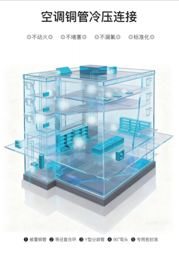 Shanghai Lokring Technology Co., Ltd. is a high-tech enterprise specializing in cold pressing connection solutions for air conditioning copper tubes. Its core business covers the R&D, production, and sales of cold pressing connection-related products, with a product line that includes SHLOKRING Lokring, dedicated branch pipe assemblies for multi-connected units (including 90° elbows), insulated copper tubes, specialized sealing liquids, weld-free leak detection pressure test assemblies, and manual/electric crimping tool kits.