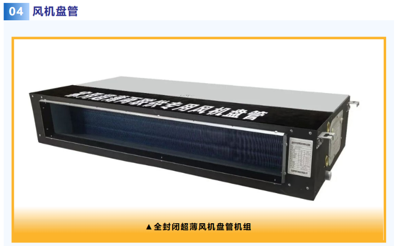 Horizontal concealed fan coil units, horizontal exposed fan coil units, vertical concealed fan coil units, vertical exposed fan coil units, ultra-thin fan coil units, cassette four-way fan coil units, wall-mounted fan coil units, high-airflow cabinet fan coil units, dry coils.