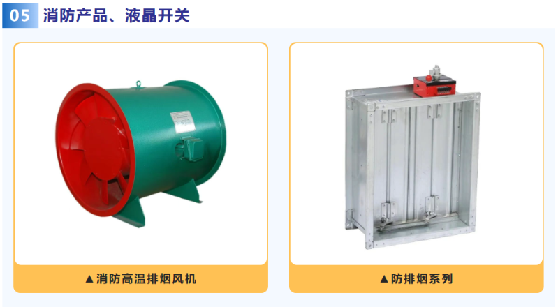 Axial/centrifugal high-temperature smoke exhaust fans and fire smoke control valves, meeting fire emergency requirements of high-rise buildings and industrial sites.