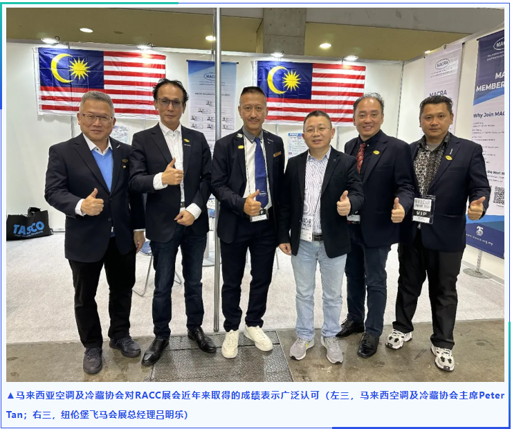 As the official Chinese general agent for this edition of HVAC&R JAPAN, the RACC organizing committee received widespread recognition for the comprehensive and high-quality services provided to Chinese enterprises participating in the exhibition in Japan. The participants expressed their intention to continue joining the RACC organizing committee for overseas exhibitions in the future. Additionally, to fully create a true HVAC&R industry event and expand the international influence of the RACC series of exhibitions, the RACC organizing committee actively engaged in the exhibition activities during the event. They visited every exhibitor and some professional visitors in attendance, providing detailed introductions to the new exhibition concepts, scale changes, and innovative highlights of RACC CHINA and RACC ASEAN (Thailand)-key components of the Chillventa Global Network. They extended extensive invitations to global professional buyers and industry enterprises to join the RACC series of exhibitions, aiming to jointly explore core markets such as Europe and Asia and achieve broader and more efficient international collaboration. During the exchanges, many enterprises and visitors expressed great anticipation for the RACC series of exhibitions and widely recognized the high-quality VIP services and forum content provided by the RACC organizing committee. Furthermore, during the exhibition, Peter Tan, Chairman of the Malaysia Air-Conditioning and Refrigeration Association (MACRA), and his delegation praised the excellent organizational capabilities of the RACC organizing committee. They expressed their commitment to strengthening collaboration between MACRA and RACC and announced plans to organize numerous member enterprises to participate in the RACC series of exhibitions scheduled for October 22-24 this year.